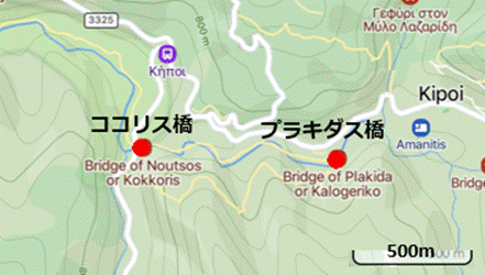 一つ目のココリス橋(Kokkoris Bridge)は、1750年頃に近くの村の篤志家によって造られ、その後、再建や修復が加えられ、現在も観光用に使われています(写真下)。
