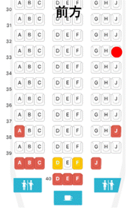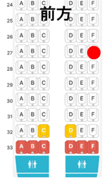 飛行機はアエロメヒコ航空(Aeromexico)のAM057便で、機体はBoeing 787-9です。成田を09:35に発って、12時間35分の飛行の後、メキシコ・シティに07:10に到着します。 写真下の33Fが私の予約した座席で、今回のツアーでは予約はすべて無料でした。旅行を申し込んだ時、私が後ろの座席を希望すると、添乗員から「メキシコでの乗り換えに時間がないので、前の座席にしてほしい」という連絡が来て、私は同意しました。乗り換え時間は1時間55分あるが、到着が遅れたりすると走ることになります。 だが、実際は私は33列目ですから、前と言い難いばかりか、私よりもさらに後ろの席に他のお客さんが座っています。幸い、乗り換えには問題はありませんでした。