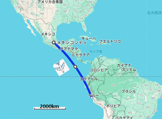アメリカ経由とメキシコ経由 日本から南米に行くのはアメリカ経由が手続きが煩雑でも時間的には一番短い。昔、参考にしていたネット上の旅行記『異国を旅して』では、1999年の成田からペルーのリマまで、ヒューストン経由で15時間40分かかったとあります。私たちのメキシコ経由では20時間35分ですから、うらやましいほど短く、感じの悪いアメリカでも我慢する価値はあります。ところが、今年初めから、アメリカでは大小の航空機事故が立て続きにおきました。