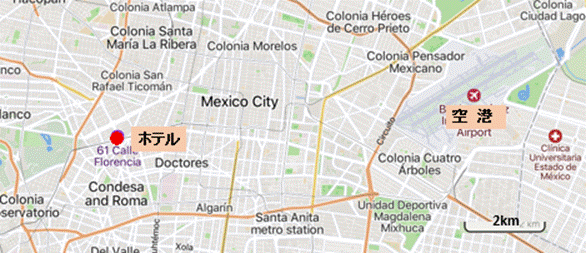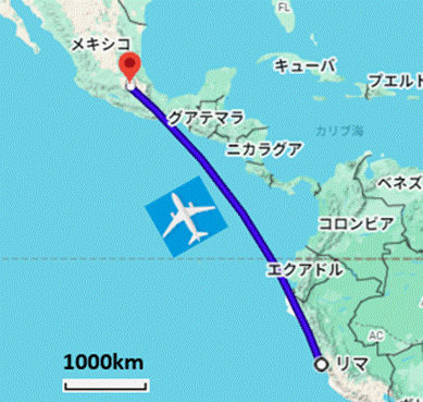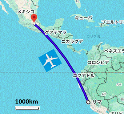 表紙 日程表 1 2 3 4 5 6 7 8 9 10・11 ペルー・アンデス めおとプヤの最期 8日目 2025年5月14日(水) ワラス → リマ → メキシコ・シティ 今日はワラスからメキシコ・シティまでほぼ移動だけです(地図下)。朝、5時前に起きて出発の準備を始めました。 当初の日程では、飛行機を乗り継いでメキシコ・シティに行き、深夜に成田行きの飛行機に乗る予定でした。ところが、出発前の3月下旬に旅行会社から、アエロメヒコの飛行機の予定が変わり、一日、メキシコ・シティに滞在するという連絡がありました。年金暮らしのお気軽老人としては、一日くらい遅れても人生に大きな影響はなく、なんなら一日と言わず、一週間くらいメキシコ・シティに滞在するのでもかまわない。何よりも、メキシコ・シティで一泊するなら身体は楽です。